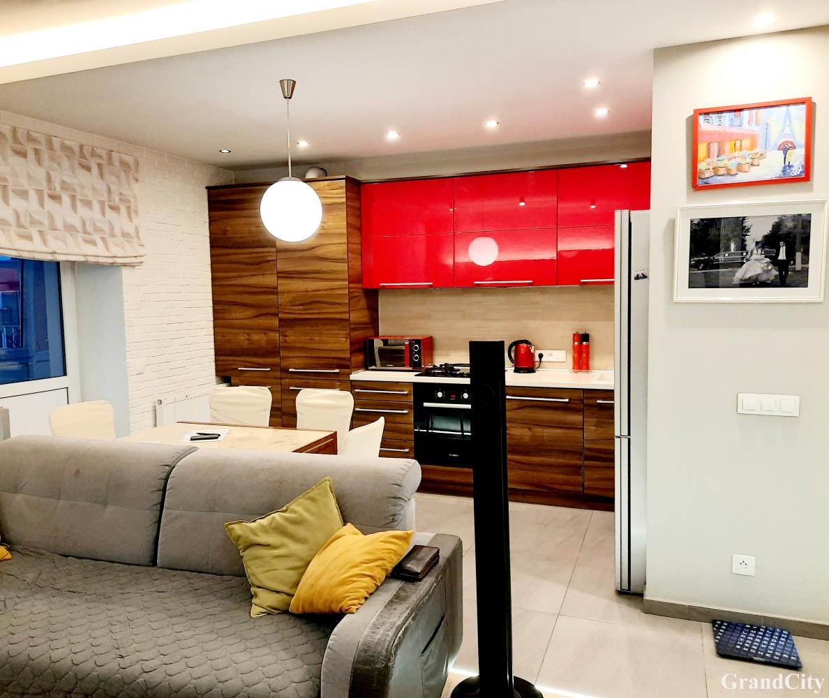В квартира был выполнен качественный ремонт, с учетом современных тенденций: продумано множество сценариев освещения, вся встроенная техника, музыкальный центр и тв., на полу паркетная доска, долговечный керамогранит. В ней приятно находиться как днём, так и вечером. Вы точно порадуетесь прекрасному виду из окон, который открывается на утопающие в зелени улицы.